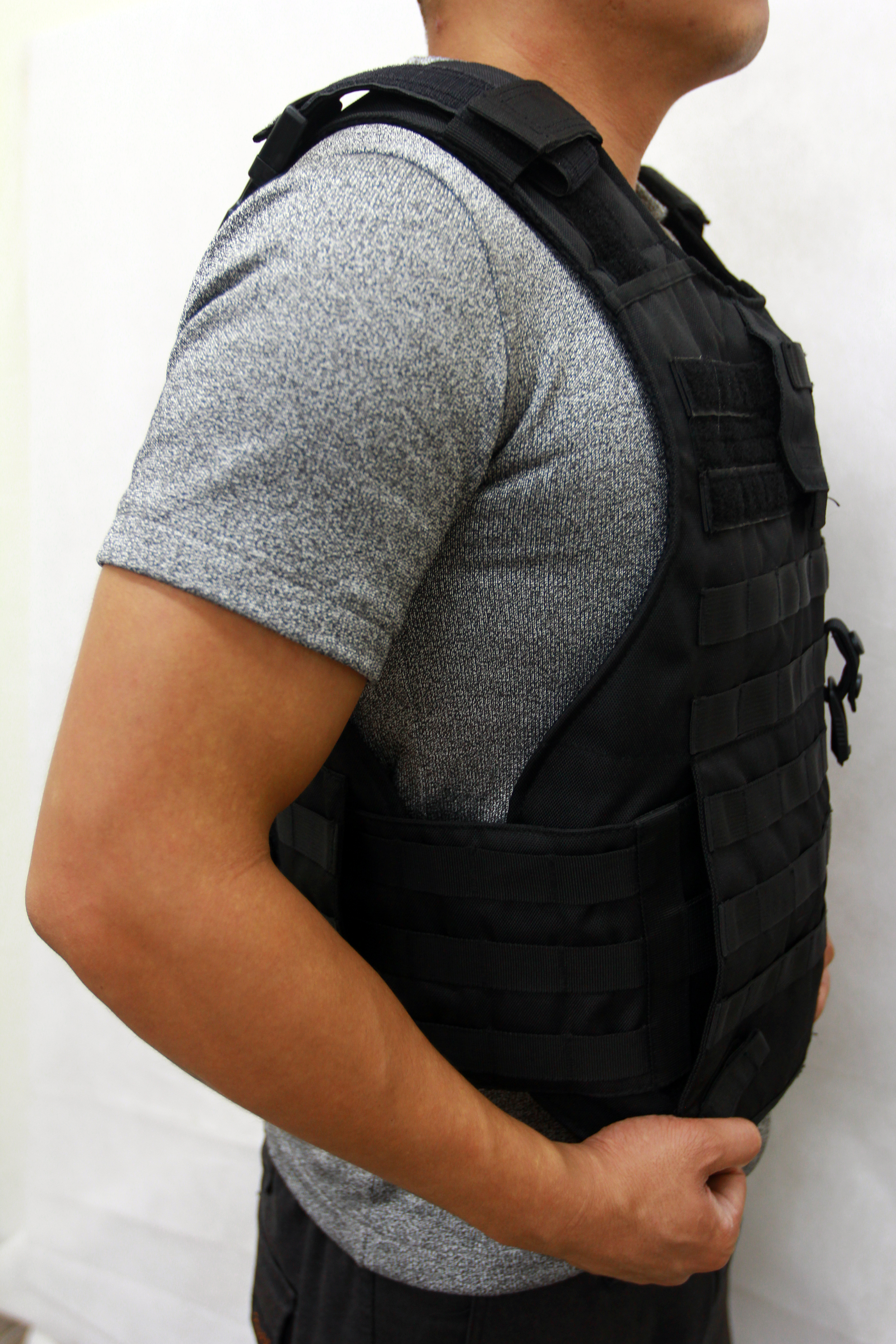 採用高強高模聚乙烯短切紗防刺材料製造的軟質防刺服,也稱為防刺背心或防刺衣。在高溫、常溫、低溫狀態下能有效地阻擋刀具、匕首、三棱刀等冷兵器的刺、割、砍的攻擊、刮劃,還可以防一般爆炸物品及破片的侵襲。全面保護人體軀幹和內臟免遭傷害。